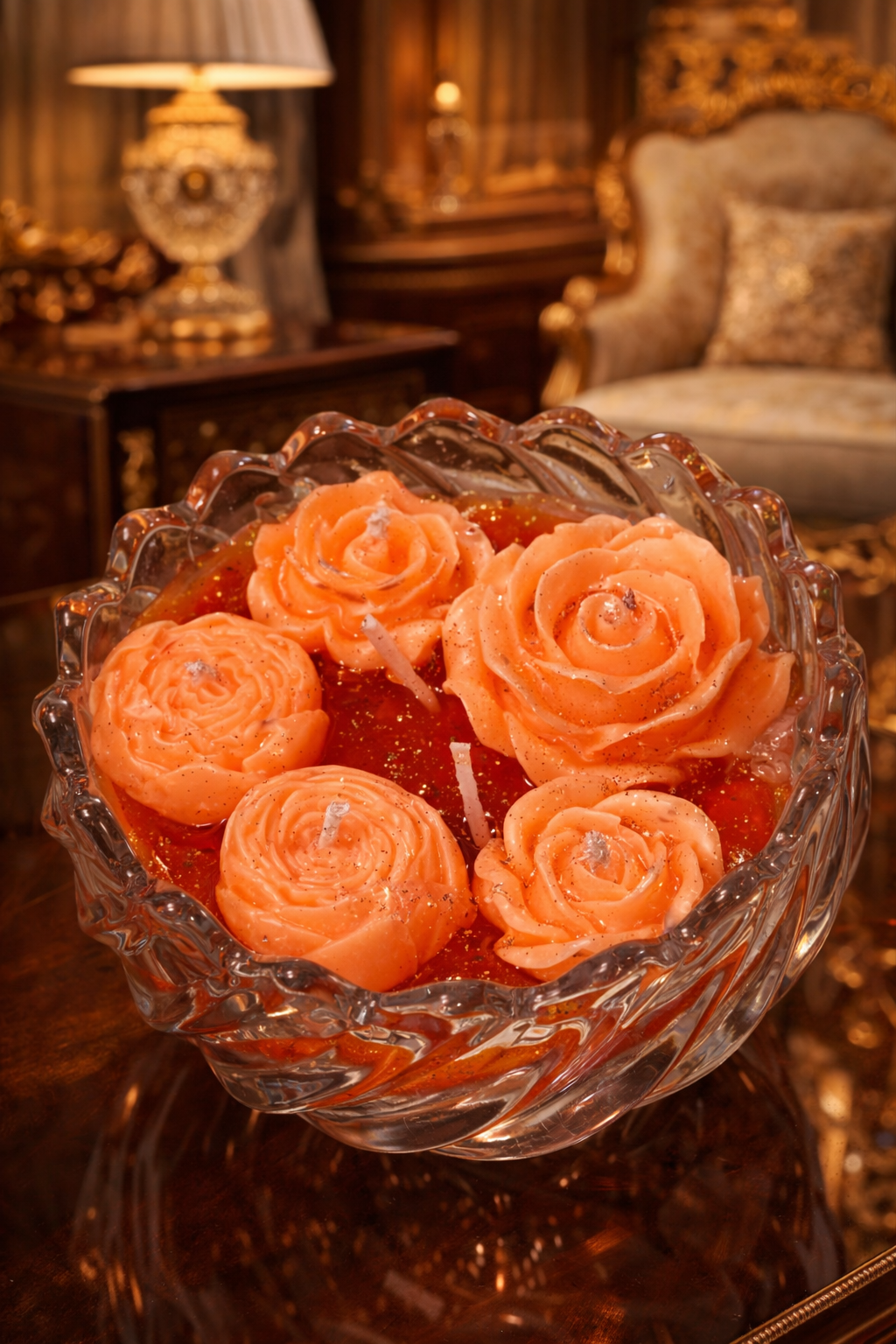 Bring elegance and warmth to your home with this luxury handmade scented candle by CandleCrew. Designed in a premium crystal jar with lid, this candle features a beautiful gel layered wax design combined with delicate handcrafted floral wax roses, creating a stunning decorative look.